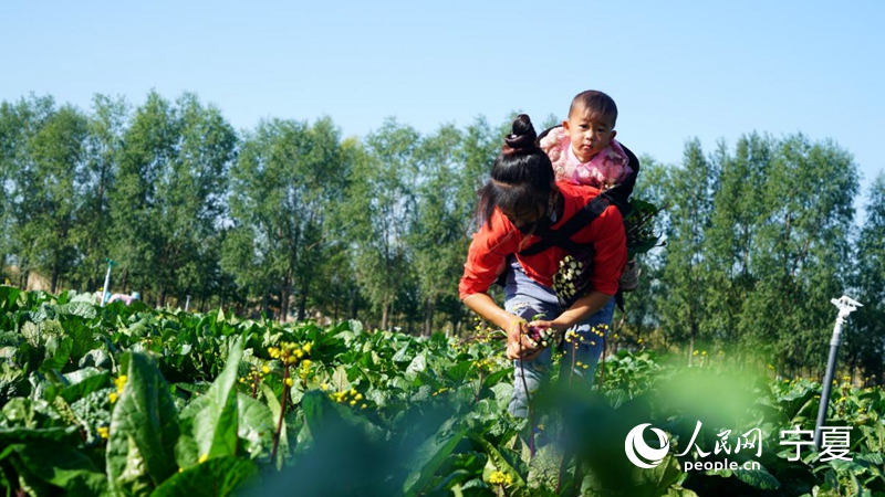 一位菜農正在采摘蔬菜。人民網 梁宏鑫攝