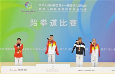全國第十一屆殘運會暨第八屆特奧會將于10月22日至29日在陜西舉行。記者10月10日獲悉,在剛剛結束的全國殘運會跆拳道提前比賽項目中,寧夏運動員焦龍獲金牌,這是寧夏運動員在本屆賽會中獲得的首金。截至目前,寧夏代表隊已獲得1金3銀4銅。 記者 楊淑瓊 攝