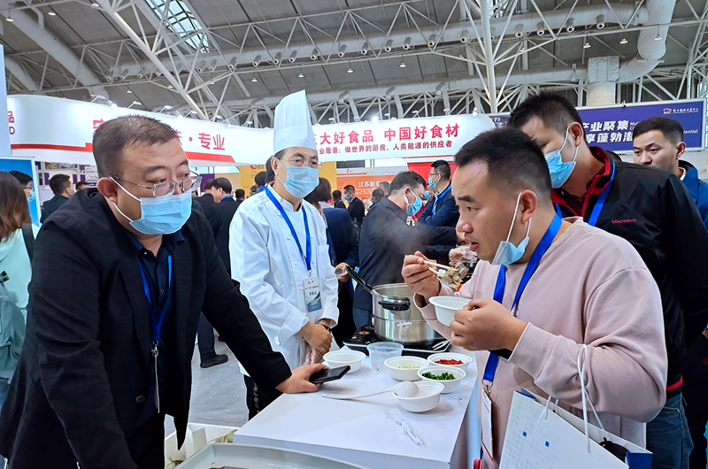 “我們這里什么都有,但是這么好的羊肉卻很難得,今天兒子帶我逛展會,我也一飽口福!蹦暇┦忻駨埓髬屨f。