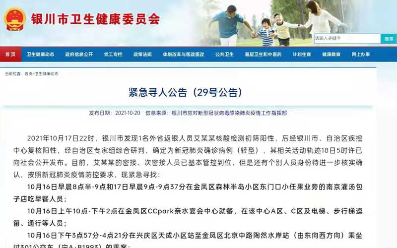 銀川發布緊急尋人公告:尋找確診病例艾某某密接、次密接者