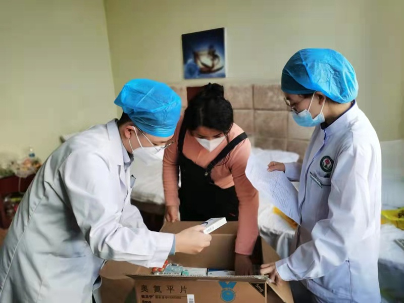 在靈武市,工作人員為滯留旅客送去藥品。寧夏文旅廳供圖