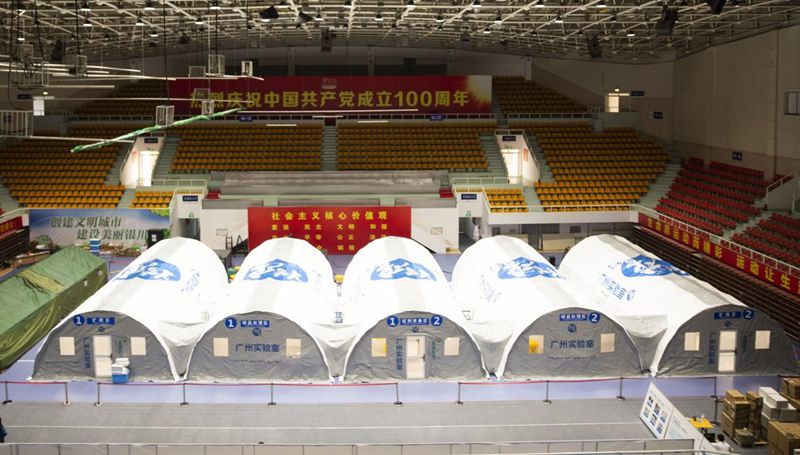 寧夏調集4輛移動方艙實驗室和1個氣膜實驗室 檢測能力每日達20萬管以上