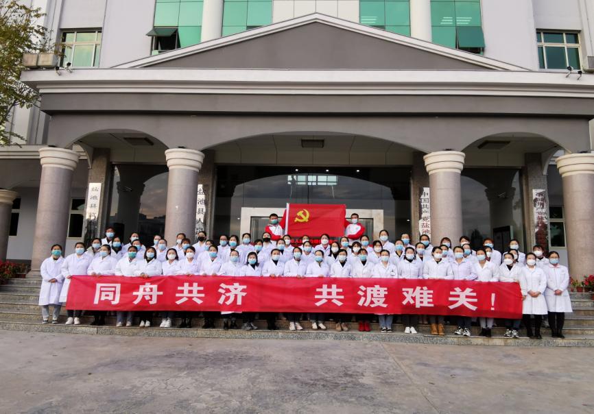黨員醫護人員支援利通區疫情防控集中宣誓。鹽池縣委宣傳部供圖