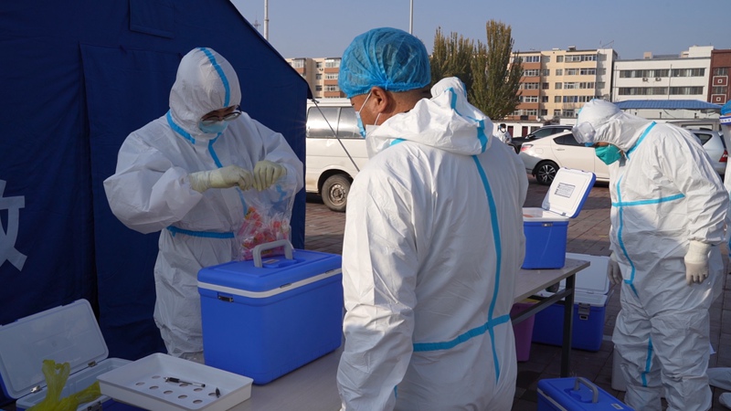 15分鐘后,李超就到達了最近的醫療援助點,小跑著將今天的第一份核酸檢測樣本送到了檢測人員手中,清點結束后便急忙上了車,開始第二趟的轉運。