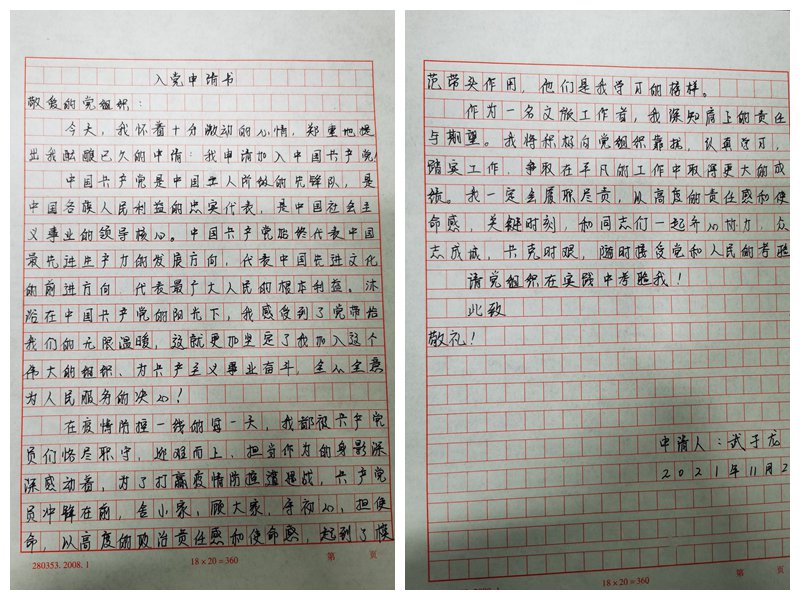 “在疫情防控的每一天,我都被黨員們恪盡職守、迎難而上、擔當作為的精神深深感動著,為了打贏疫情防控阻擊戰,黨員們沖鋒在前,舍小家、顧大家,起到了模范帶頭作用,他們是我學習的榜樣。我一定要履職盡責,在關鍵時刻接受黨和人民的考驗!蔽渥育堅谏暾垥蠈懙。他是這樣寫的,也是這樣做的。