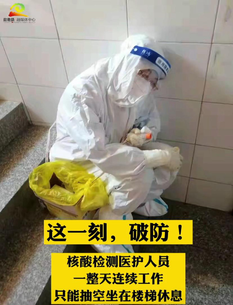 近日,一條關于寧夏一核酸檢測工作人員累倒坐在樓梯上休息的小視頻,引發網友的關注!靶量嗔,可愛的大白”“致敬最美醫護人員”……一條條留言,表達著網友們的感激之情。