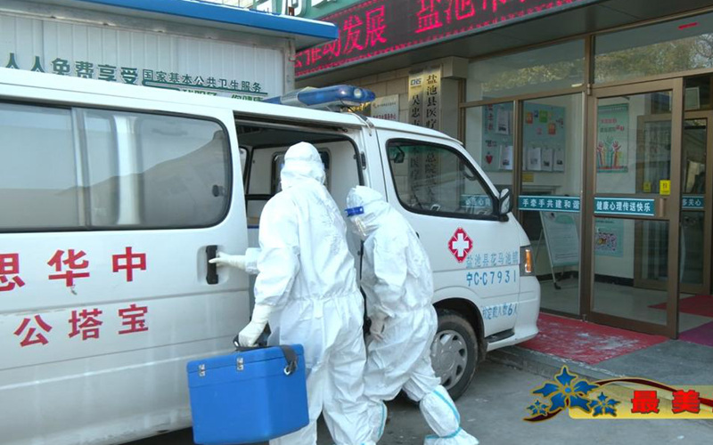核酸檢測樣本轉運。鹽池縣委宣傳部供圖