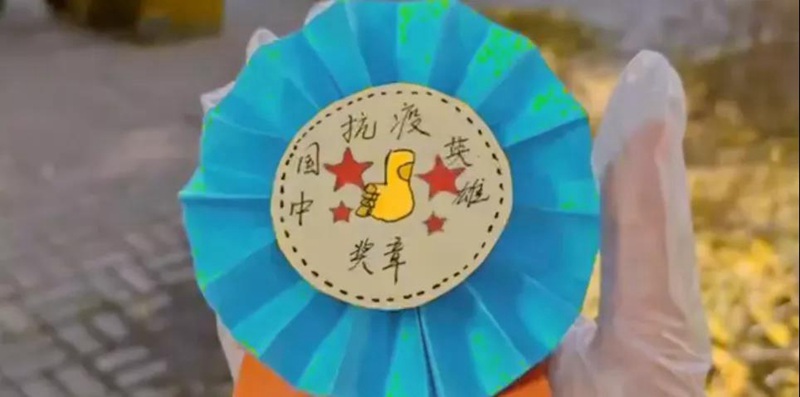 花朵中夾著一張紙條,紙條上面寫著:“致敬所有防疫一線的天使們!雖然我們素不相識,但是沒有你們的保護,就沒有我們的安全。你們是最可愛的人!希望早日花開!祝愿您健康快樂!闔家幸福!”