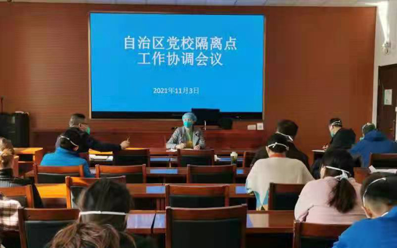 自治區黨校隔離點工作團隊是臨時組建的,剛開始只有四名醫護人員。人員到崗后,組長召開了隔離工作安排部署會議。并囑咐道,“醫務人員要抓緊時間準備。晚上會有三百多名次密接人員入駐區黨校六號樓進行隔離!