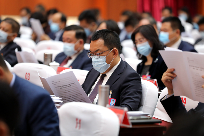 全會列席人員正在聆聽工作報告。人民網 高嘉蔚攝