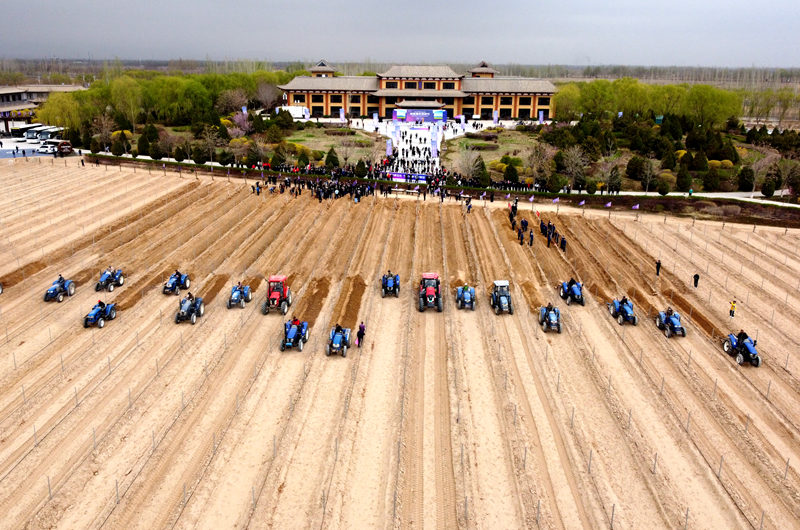 今年春耕時,葡萄種植工進行葡萄藤出土展藤。人民網 高嘉蔚攝