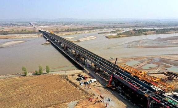 烏瑪高速公路鎮羅黃河特大橋合龍。人民網 梁宏鑫攝
