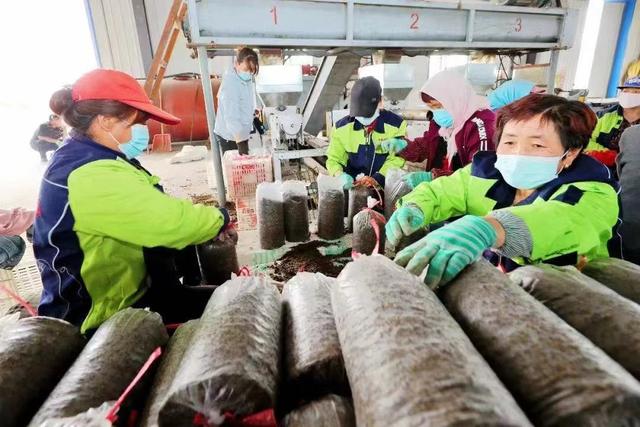紅翔新村菌菇基地里,工人們正在制作菌棒。平羅縣委宣傳部供圖