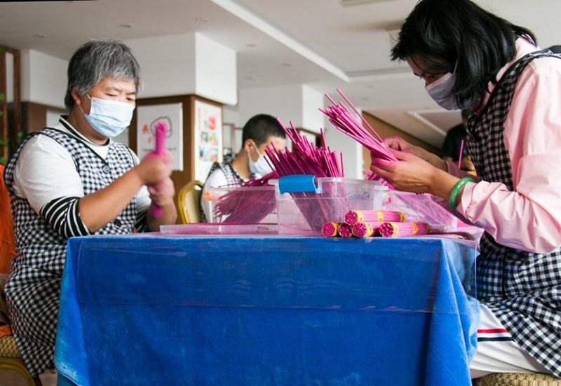 “我們把半成品香配送到殘疾人家,經過他們的包裝,我們再收回成品!边M寶制香廠負責人陳進寶介紹,目前殘疾員工有36名,他們不用坐班,可以根據自己的身體狀況工作,既照顧到了自己的身體,也能有一筆收入。無論殘疾與否,員工一律計件付費,有些殘疾員工的收入,要比普通員工還高。