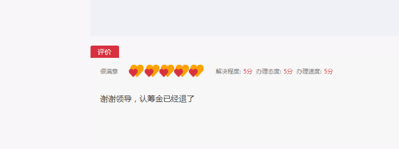 11月24日,收到退款的網友劉先生再次留言,稱“謝謝領導,認籌金已經退了!