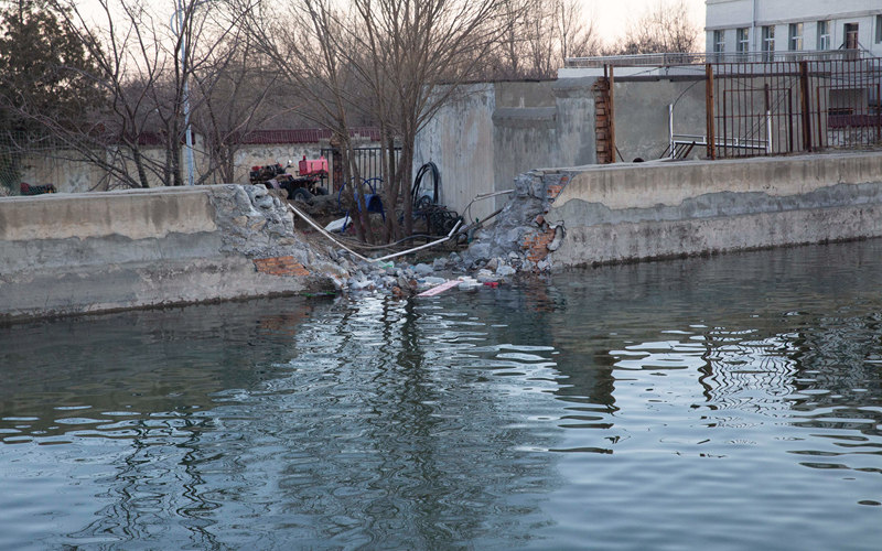 視頻顯示,11月30日白天,賀蘭山管理局先在蓄水池東邊排水口處挖開一個口子,在蓄水池東北邊用大型機械設備繼續挖開水池的時候,蘇峪口滑雪場工作人員前去阻擋,賀蘭山管理局工作人員以“正在施工,禁止入內”為由予以拒絕。