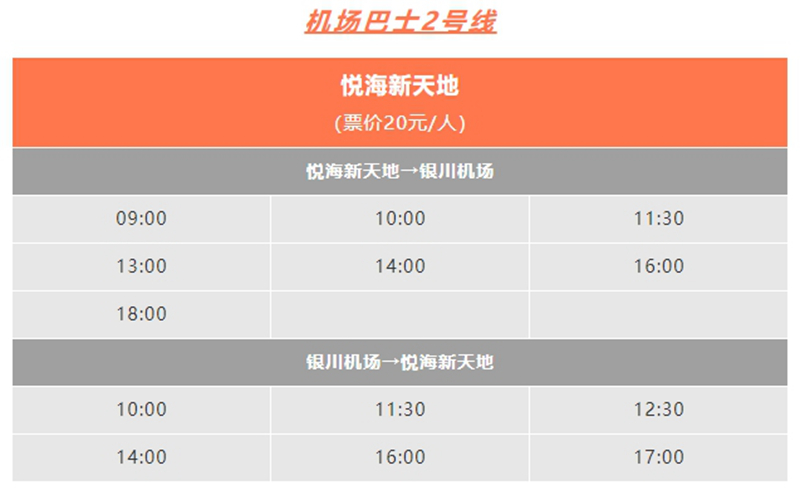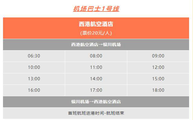 銀川機場巴士現運行班線及具體時刻如下: