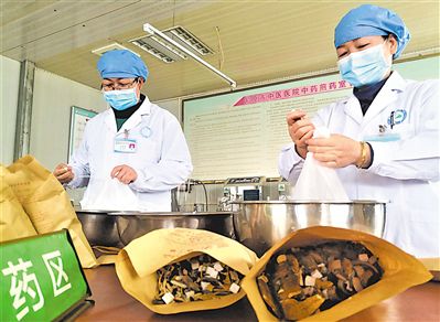 固原市中醫醫院藥劑師在分裝中藥劑。