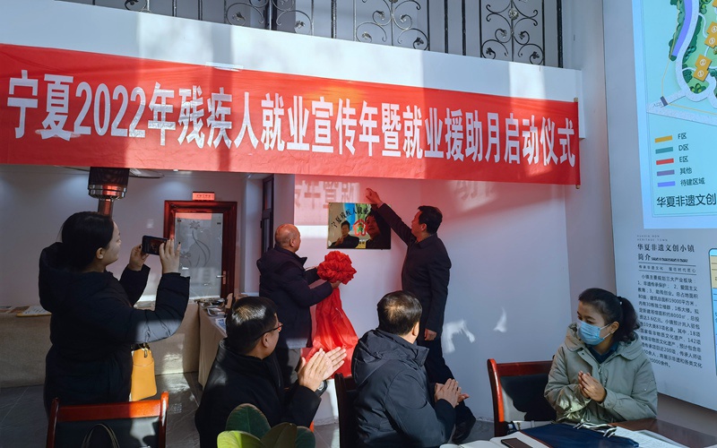 啟動儀式上,與會嘉賓為“寧夏殘疾人就業培訓基地”揭牌,并走進殘疾人手工藝品作品展示、才藝展演和產品展銷的“三展”中心,了解殘疾人手工藝品展銷情況。