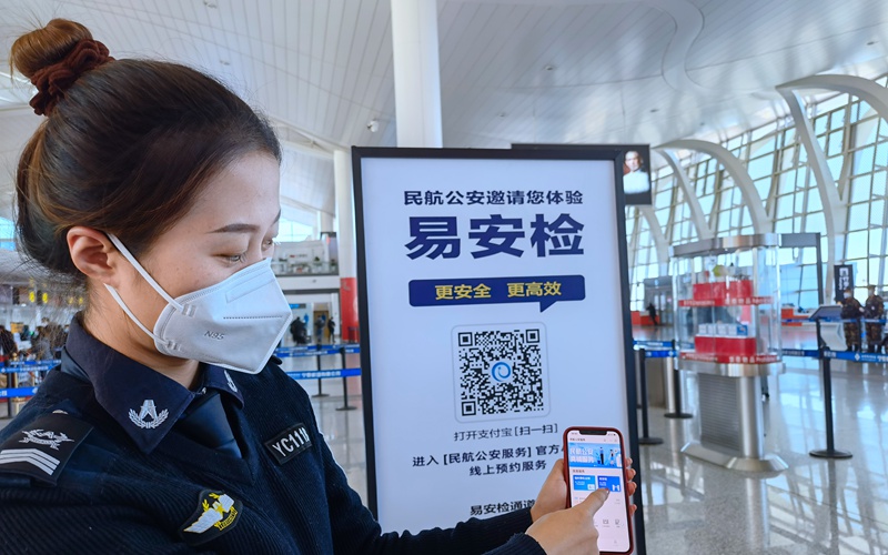 “手機打開支付寶小程序,掃一掃進入‘民航公安服務’官方小程序,進行線上預約服務、實名認證個人信息,就能到安檢S20號通道快速過檢!便y川河東機場安全檢查站班組長于樂說。