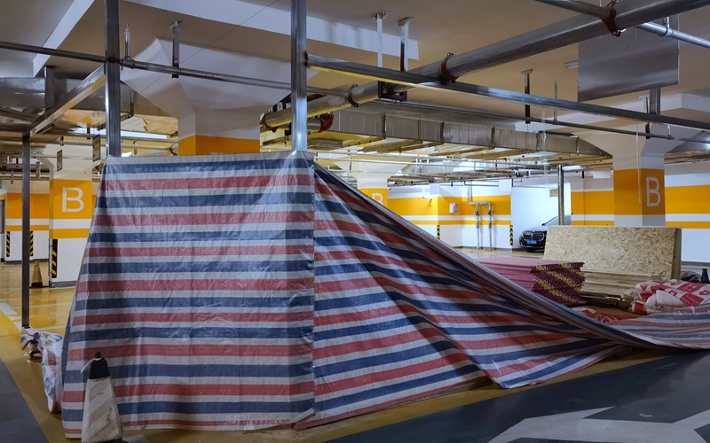 2月17日,本網實地走訪了金鳳天山熙湖小區地下車庫,F場無施工人員,也無施工設備。但現場還留有搭建洗車行的材料,部分區域已用塑料布圍擋起來。一位路過的業主表示,“最近洗車行再沒有施工,目前已拆除了一部分,但并未完全拆除!