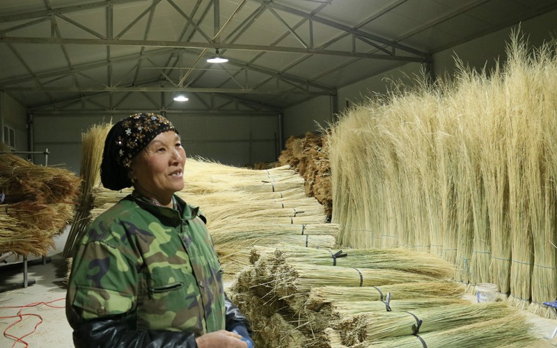 芨芨草,堅硬、直立,可用于制作掃帚。李耀梅結婚后,生活的地方位于同心縣預旺鎮,山上有芨芨草,她就地取材,將芨芨草做成掃帚在集市上銷售。此舉,不僅維持了生計,也為后來的發展打下了市場與客戶基礎。