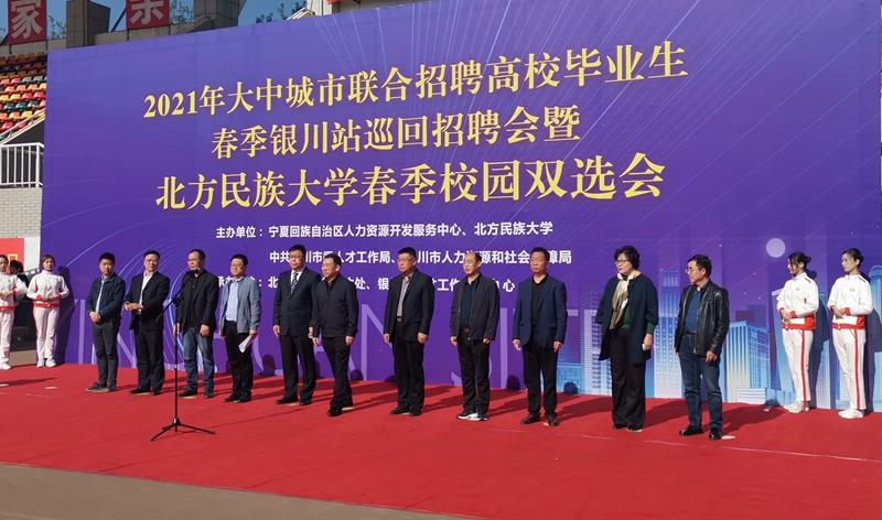 2021年大眾城市聯合招聘高校畢業生春季銀川巡回招聘會暨北方民族大學春季校園雙選會召開。銀川市委宣傳部供圖