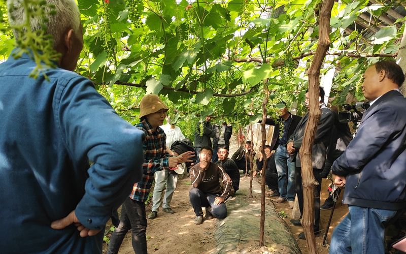 浙江大學教授賈惠娟對永寧縣葡萄種植戶進行現場培訓。銀川市委宣傳部供圖