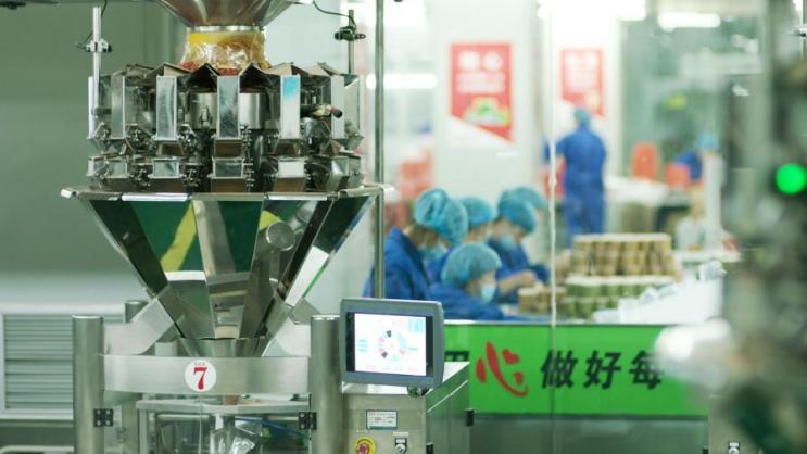 在寧夏厚生記廠區標準化生產車間,先進的生產作業流水線旁鮮有工人身影,廠房外則人來車往,物流公司的貨運車排起了長隊!凹t牛飲料生產線投產以來,每天有3萬箱飲料裝車送往全國各地!惫究偨浝碜T勇介紹說。