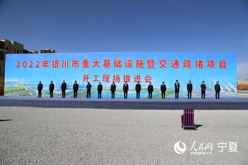 銀川市2022年首批重大基礎設施暨交通疏堵項目集中開工推進會現場。人民網 趙茉鈺攝