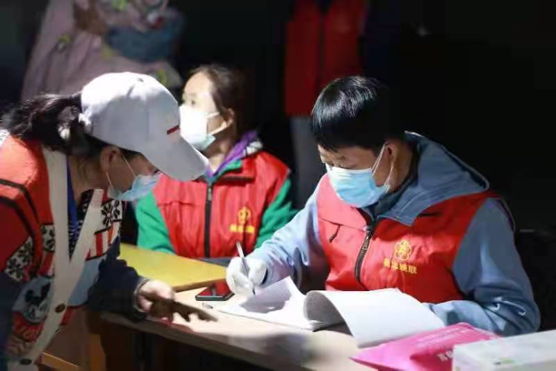 下沉機關黨員干部做核酸檢測信息登記工作。吳忠市委組織部供圖