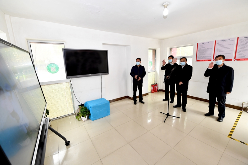 梁言順等領導來到寧夏兒童福利院,檢查兒童福利機構封閉管理疫情防控情況,并在保安室通過視頻與該院封閉管理人員簡短交流。記者 左鳴遠 攝