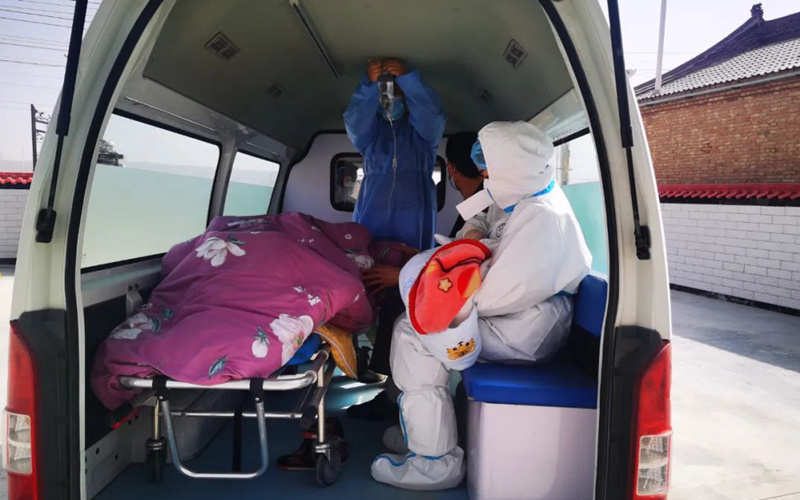 這時候預旺鎮趕來的救護車到了,張穎慧給孩子包裹好,陪著她們去往縣人民醫院,大概行駛了半個小時后,她與縣人民醫院的醫護人員相遇了。交接產婦后,張穎慧又匆匆趕回趙家樹村,繼續進行核酸檢測工作。
