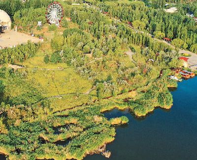 內蒙古庫布其七星湖景區。新華社記者 金良快攝