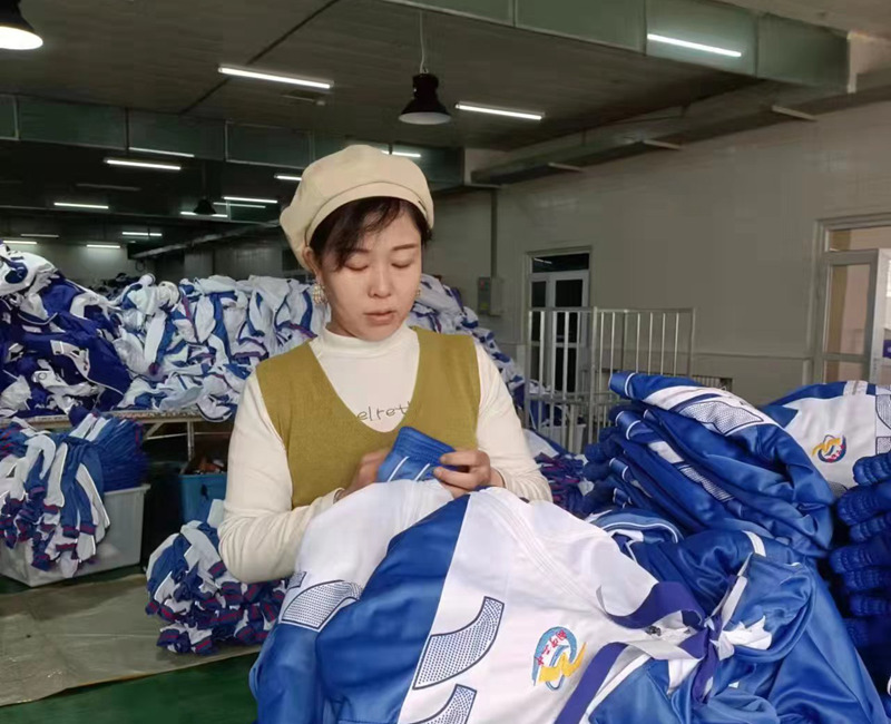 作為閩寧鎮富貴蘭扶貧車間包裝組的組長,王文娟每天8點準時到崗,開始一天的忙碌。剪掉流水線上衣服成品的線頭,檢驗產品是否合格,再將這些衣服一件件熨燙,裝入包裝袋。這一忙,就是一整天。