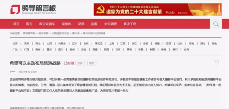 人民建議丨網友為文旅產業布局建言 銀川:從五個方面提升城市形象