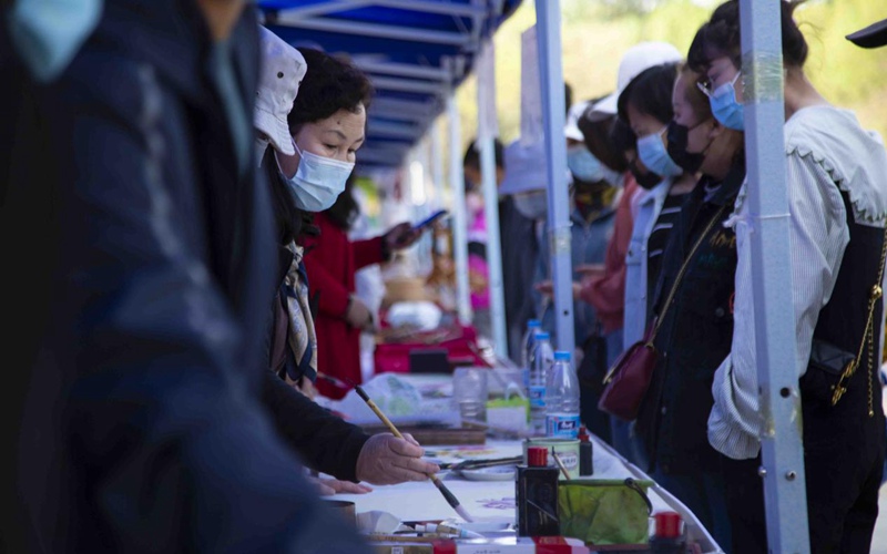 活動現場,游客賞花、看文藝表演、旗袍秀,還有來自青銅峽市的非遺工作室、非遺傳承人、扶貧就業工坊,帶來剪紙、烙畫、掐絲沙畫、面塑、糖畫、手工編織等非遺產品,并邀請游客體驗非遺產品制作過程,F場還有書畫采風、圖書展等系列活動。