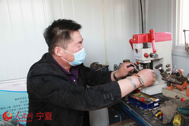 正在便民服務點內配鑰匙的曹彥明。人民網 李甜甜攝