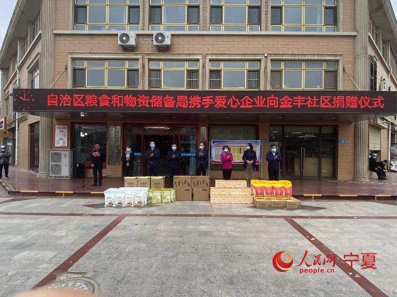 人民網吳忠4月29日電 (劉峰、梁宏鑫)29日上午,自治區糧食和物資儲備局攜手3家愛心企業在吳忠市利通區金豐社區舉行物資捐贈儀式,幫助對口幫扶的金豐社區以產業發展助力鄉村振興。