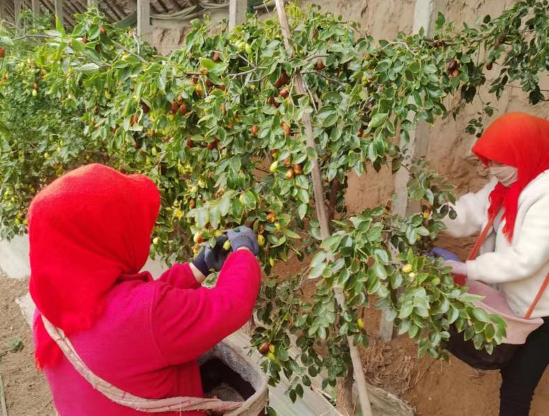 棗農忙著采摘成熟的長棗。靈武市委宣傳部供圖