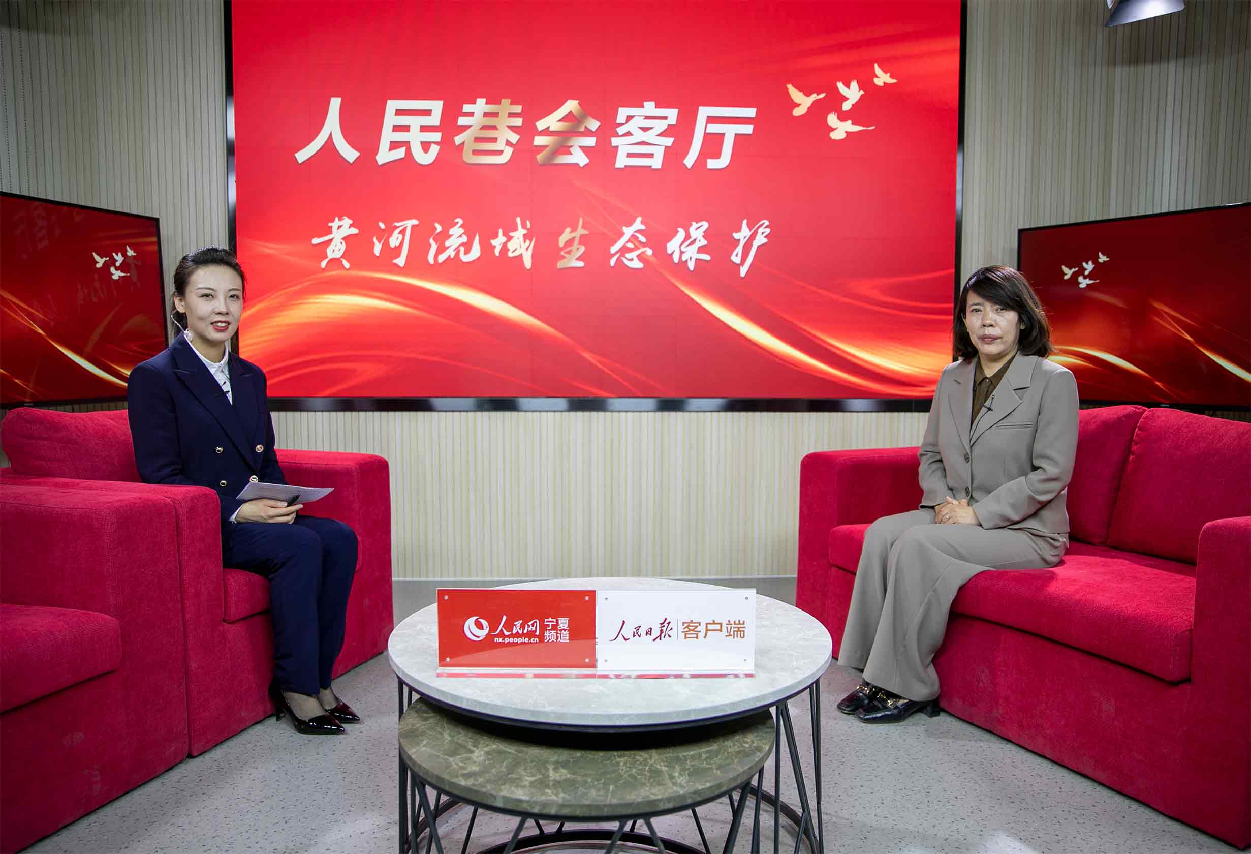 銀川自然資源局局長席靜宜(右)做客人民巷會客廳。人民網 周航攝