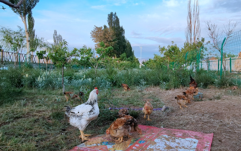 “咱這土雞一只能賣150元!苯衲63歲的楊映海和老伴利用桃園林帶散養“桃花雞”,一個月有1800元左右的收入,自家土地則全部流轉種植葡萄。