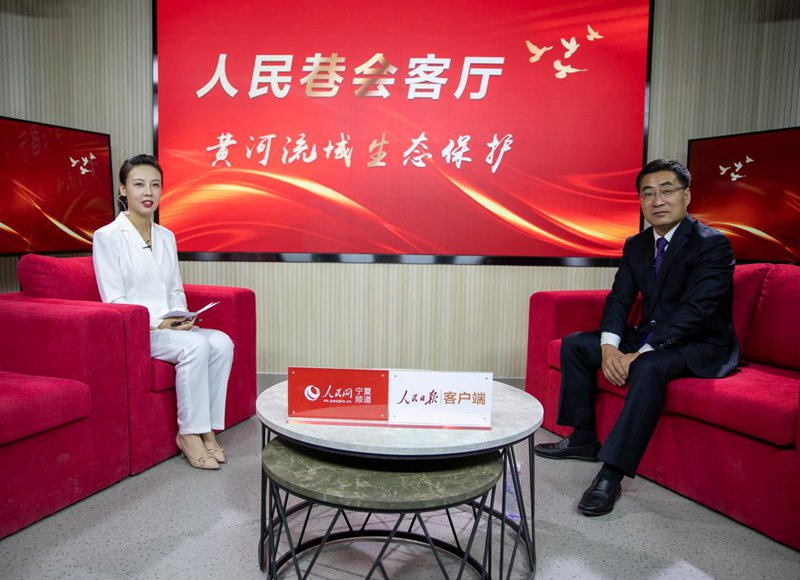 銀川市水務局局長董建華(右)做客人民巷會客廳。人民網 周航攝