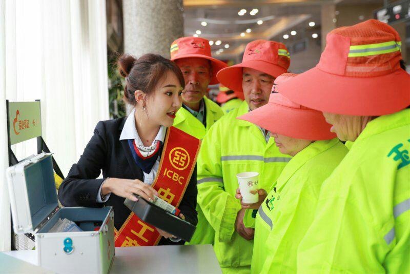 在工商銀行網點的“工行驛站”,工作人員服務戶外勞動者。圖片由工行寧夏分行提供