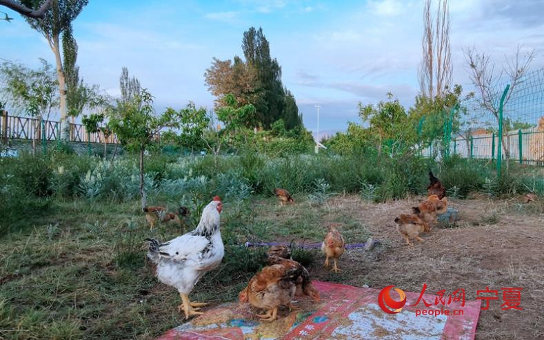 在紅寺堡區新莊集鄉楊柳村西川組,今年63歲的楊映海將自家土地全部流轉種植葡萄后,他和老伴利用桃園林帶散養“桃花雞”,一個月有1800元左右的收入。