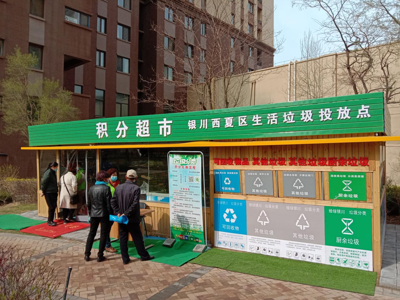 西夏區萬達華宅“積分兌換超市+定時定點回收+快遞包裝物拆解”三站合一。圖片由銀川市市政管理局提供