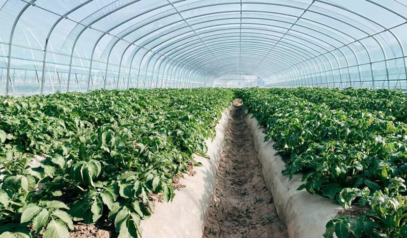 馬蓮村日光拱棚內種植的早熟馬鈴薯。人民網 張海峰攝