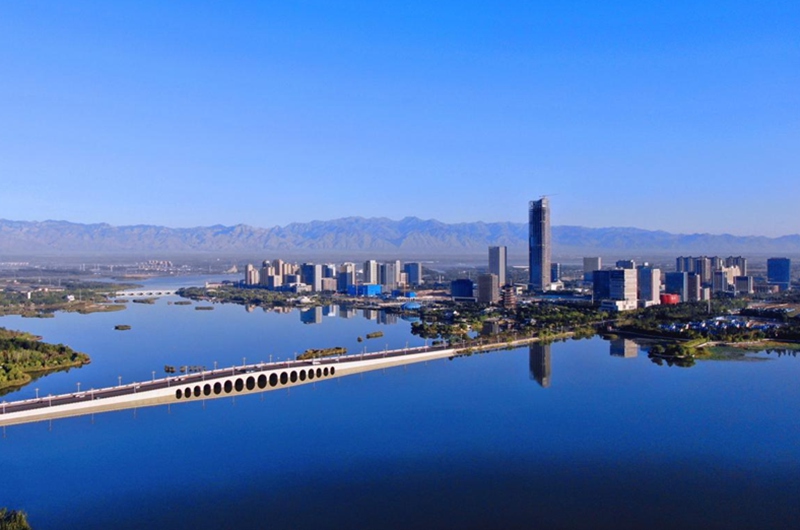 銀川城市中的湖泊。銀川市委宣傳部提供