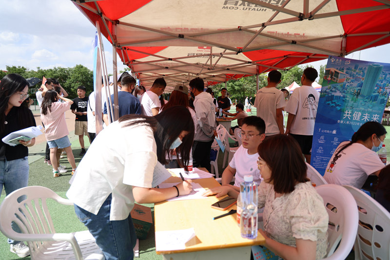 6月10日,寧夏大學新華學院舉辦“凝心聚力促就業 百日沖刺向未來”2022屆畢業生夏季校園招聘會。寧夏大學新華學院供圖