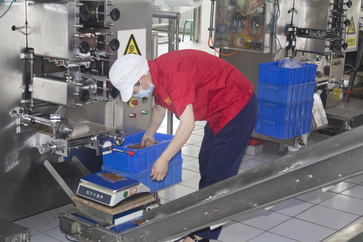 盛夏七月,走進寧夏紅山河食品股份有限公司內包裝車間,楊春霞正在進行蘸料內包裝工作,打包、稱重、傳送,一氣呵成。